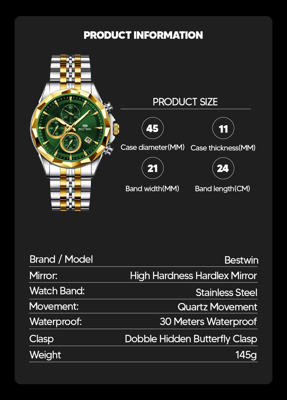 Quartz Watch For Men Fashion Stainless Steel Wristwatch Business fashion men's precision quartz watch three-eye wristwatch