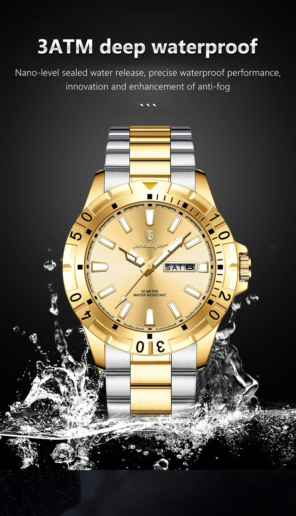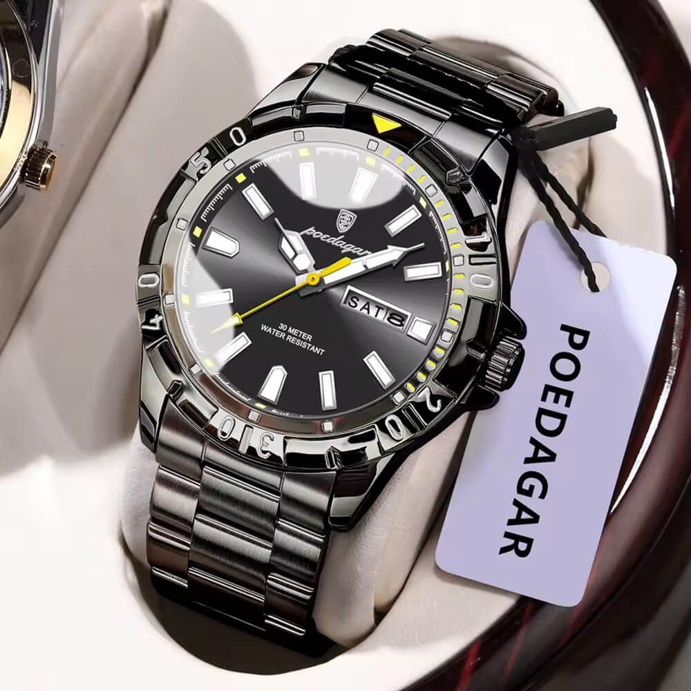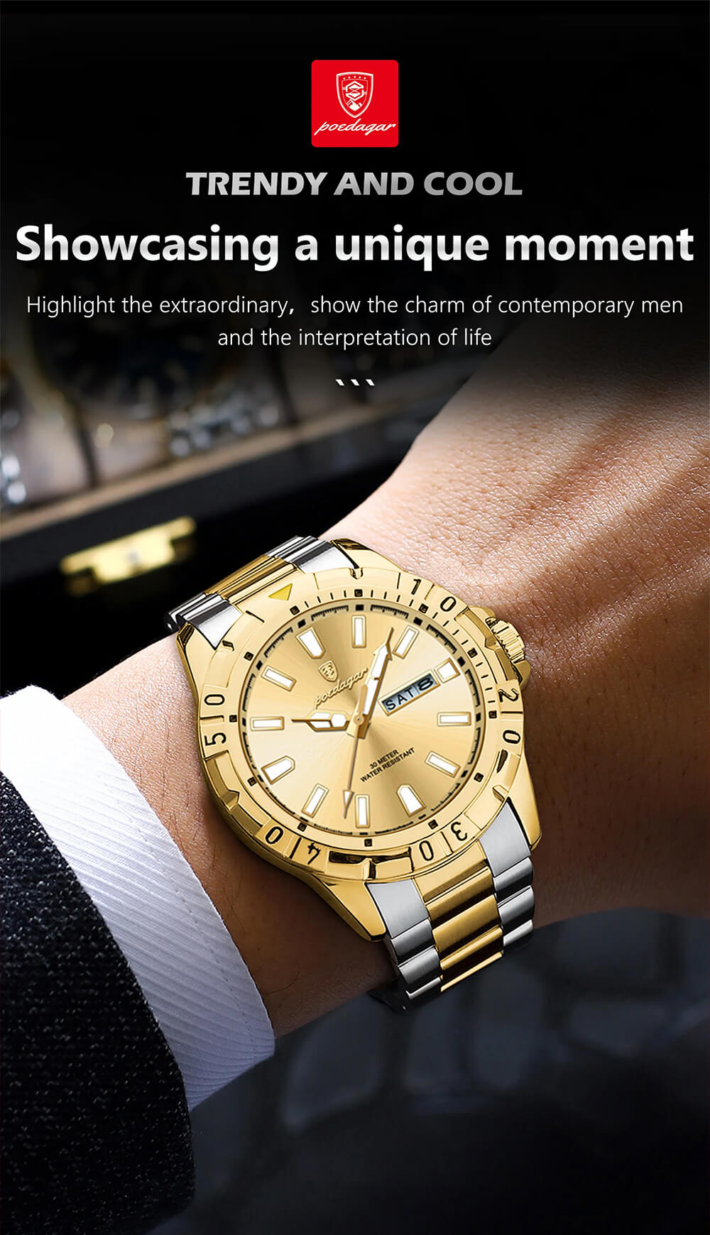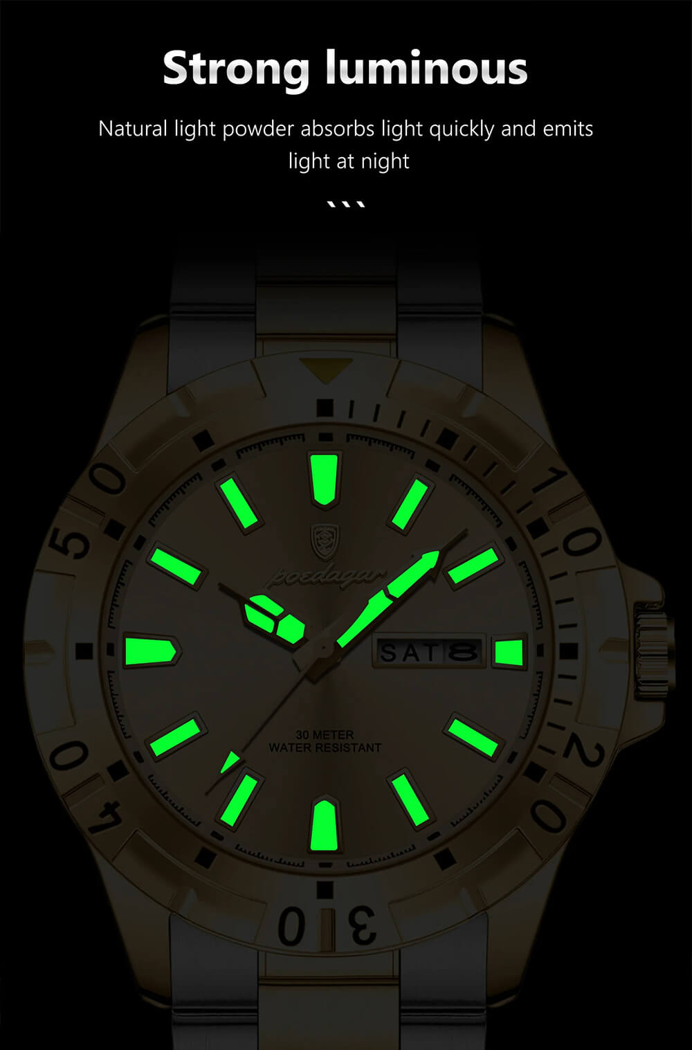 POEDAGAR Luxury Business Man Wristwatch Waterproof Luminous Date Week Men Clock Stainless Steel Quartz Sport Men's Watches