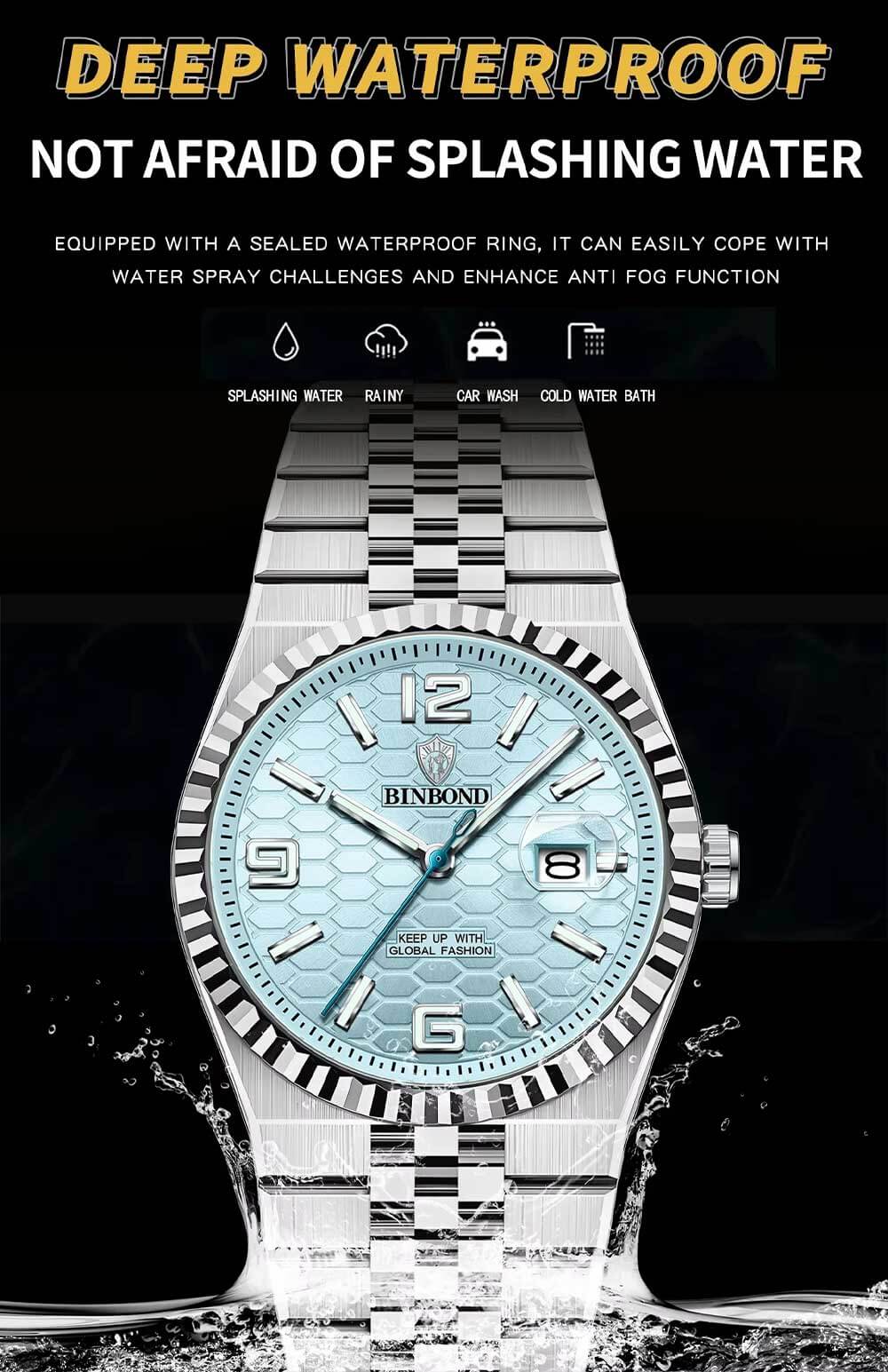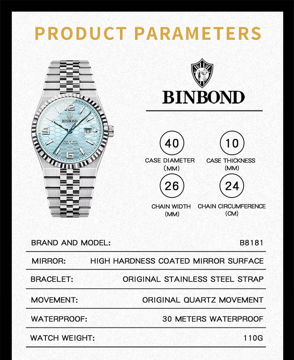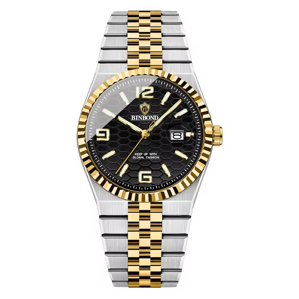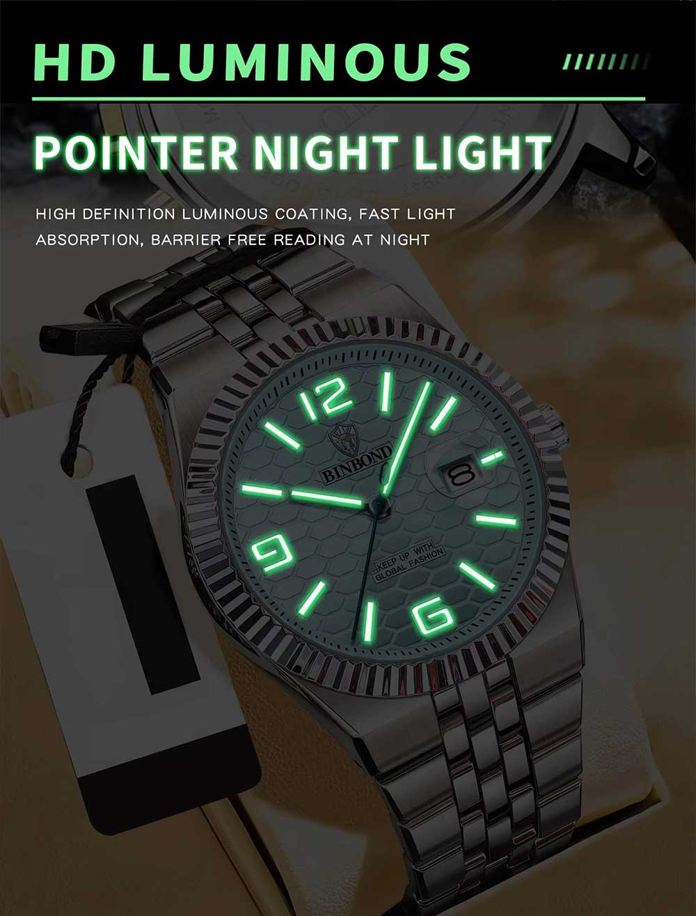 BINBOND High Quality Original Men Clock Waterproof Luminous Date Luxury Man Watch Stainless Steel Quartz Men's