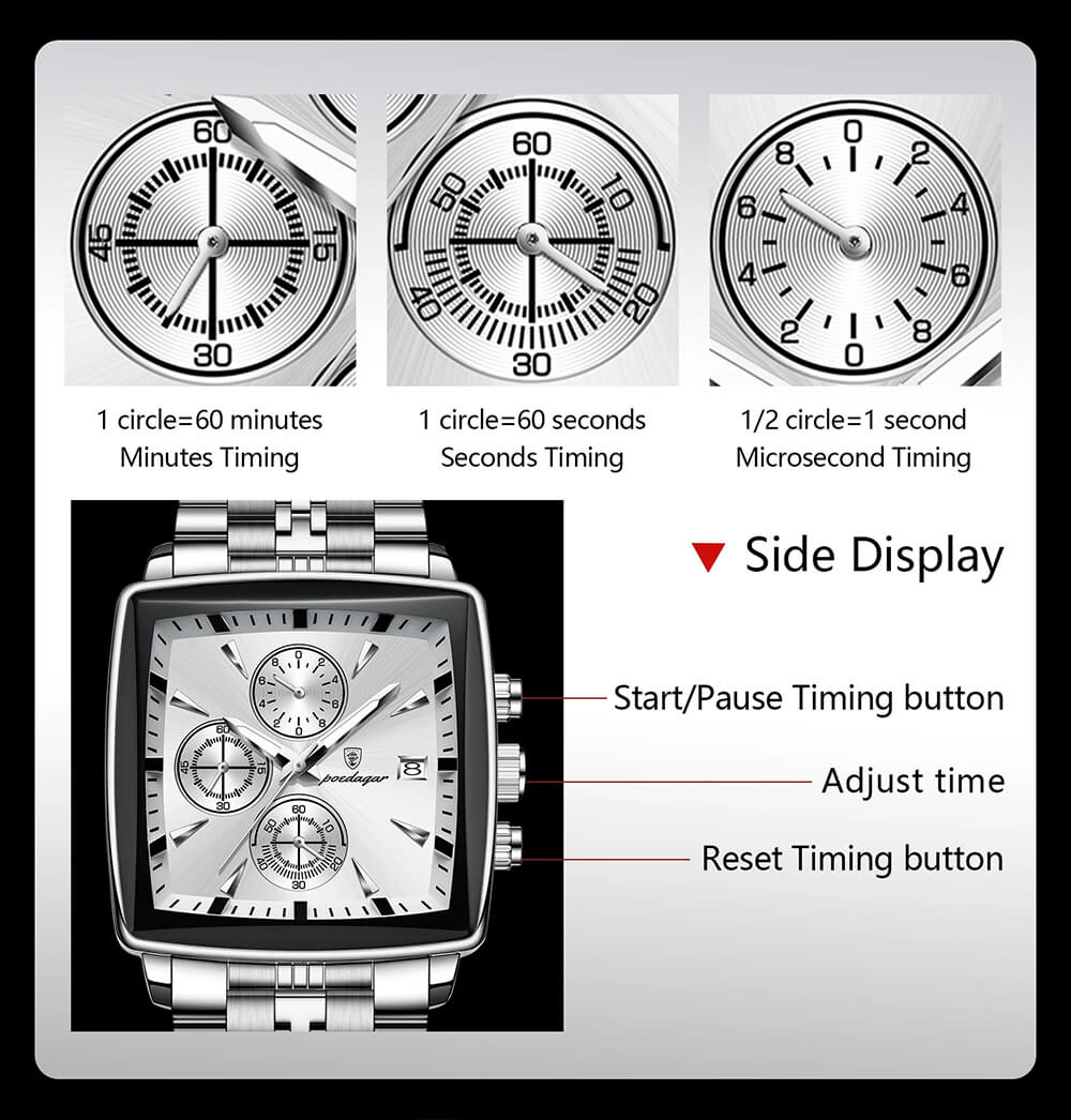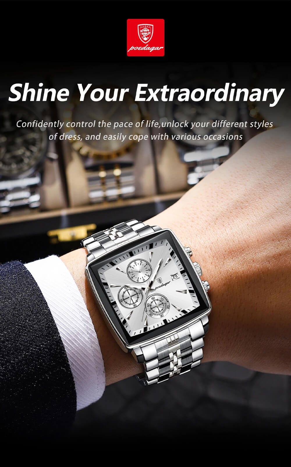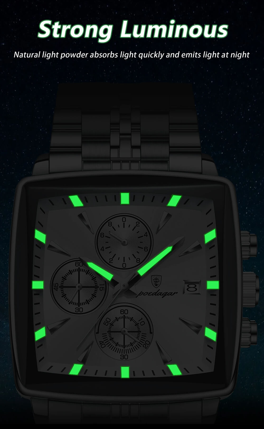 POEDAGAR Luxury Casual Men Wristwatch Stainless Steel Waterproof Luminous Man Watch Chronograph Date Sports Quartz Men's Watches